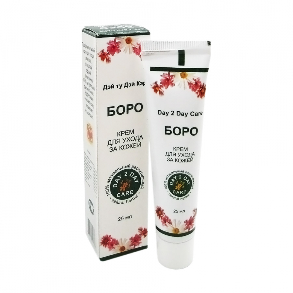 Крем для ухода за кожей Day2Day «Боро» – универсальный крем с антибактериальной защитой, созданный из натуральных природных масел большого спектра действия для ног, рук и детской кожи. Крем «Боро» является защитным от агрессивных проявлений внешней среды, устраняет мелкие повреждения – цыпки, ссадины, дерматиты, потертости. Разглаживает морщины и укрепляет кожу. Отлично смягчает детскую кожу под подгузником.