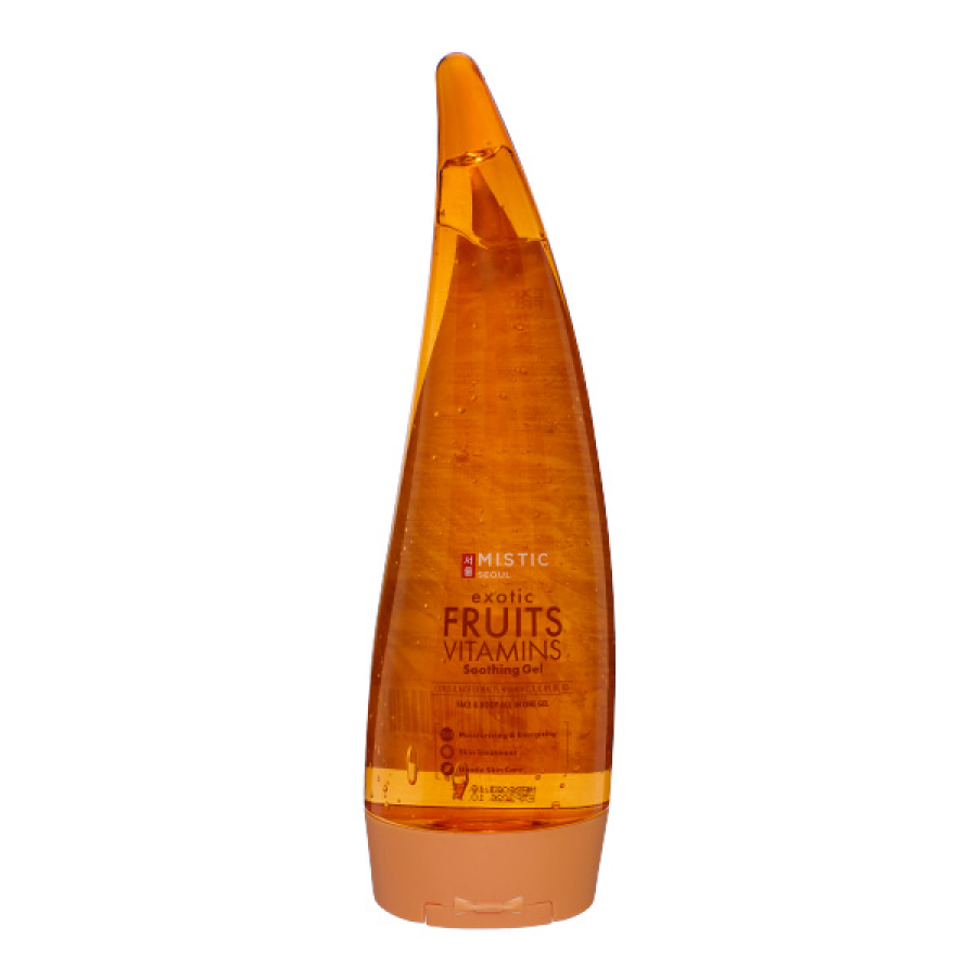 Успокаивающий гель MISTIC с экстрактами фруктов и витаминами - заряд энергии и бодрости для уставшей, тусклой кожи. Содержит экстракты цитрусов, витамины С, А, Е, В9, В5, В3 и алоэ, которые помогают увлажнить кожу, подарить ей энергию и сияние. Гель мягко ухаживает за кожей, возвращая ей гладкость, упругость и ощущение комфорта. Идеален для любого типа кожи, включая сухую и склонную к шелушению и появлению чувства стянутости после контакта с водой. Является универсальным средством для ухода за кожей всего тела. Быстро впитывается, не оставляет липкости.
