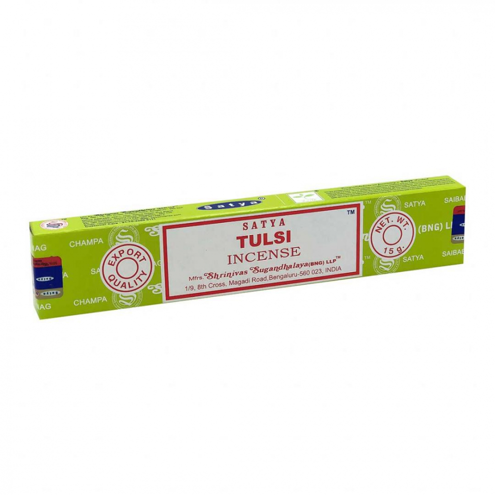 Благовоние Сатья «Тулси» выполнено в виде бамбуковых палочек с напылением, тление которого наполняет помещение пряным ароматом, устраняя неприятные запахи. Обеззараживает воздух, помогает в лечении респираторных заболеваний, облегчает головную боль. Уменьшает спазмы, мышечное и эмоциональное напряжение, избавляет от раздражительности и головной боли. Укрепляет нервную систему, помогает выйти из депрессии и восстановиться после стресса. Аромат Тулси улучшает работу органов дыхания, облегчает кашель, состояние при простуде и лихорадке. Помогает расслабиться после тяжелого дня, восстановиться после тренировки.